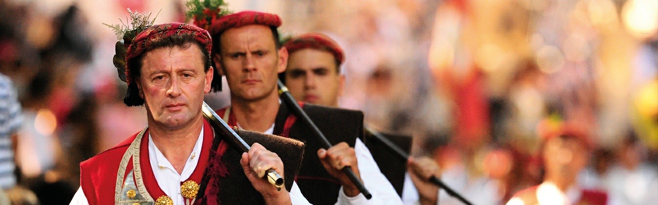 Held for more than 300 years, Sinjska Alka is a traditional chivalric tournament in which mounted knights race through the streets of Sinj, aiming their lances at a suspended metal ring. Deeply rooted in local history and community life, the event preserves medieval customs, craftsmanship, and values of fair play. Inscribed on UNESCO’s Intangible Cultural Heritage list, Sinjska Alka is a powerful symbol of Croatia’s living traditions.