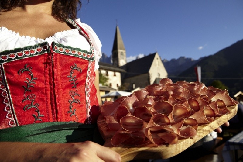 The village of Plan de Corones sets the scene for the South Tyrolean Speck Festival. The South Tyrolean Speck Festival attracts many gourmands from near and far to the beautiful Villnöß Valley, who can enjoy the breathtaking scenery while tasting the star of Alpine appetizer and snack platters: Speck alto Adige PGI.