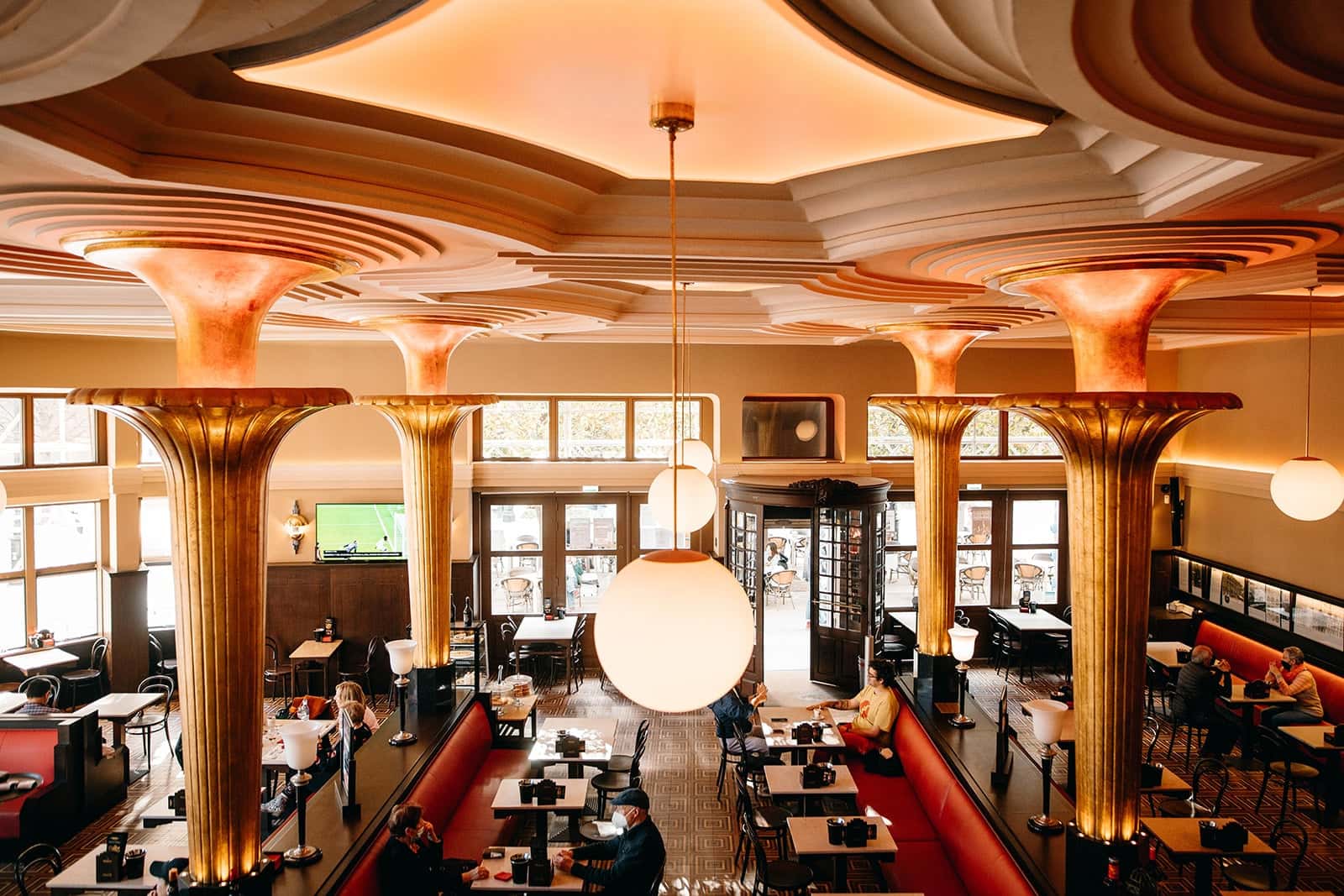 Not far away, on the Iberian Peninsula in the Spanish city of Gijon, you’ll find Café Dindurra, an avant-garde Art Deco place with unique plaster ornamentation created by Pepín Morán. The café was once part of Dindurra Theater; during the civil war German bombs destroyed the theater, yet the café survived the catastrophe.