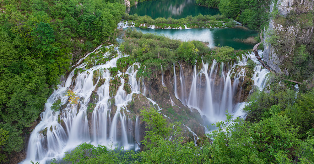 Plitvice Lakes National Park is not only a natural wonder but a symbol of Croatia's commitment to environmental stewardship. Its inclusion in the UNESCO World Heritage List highlights its significance, exceptional beauty, and ecological importance. The park's lush scenery, pristine lakes, and abundant wildlife attract millions of visitors each year, contributing to Croatia's tourism industry and raising awareness about the importance of conservation. Encompassing nearly 30,000 hectares, the park is renowned for its 16 interconnected lakes laced with cascading waterfalls formed by the unique sedimentation of travertine, a type of limestone. Nestled amidst dense forests of beech, fir, and spruce, the lakes are fed by the pristine waters of the river Korana, and feature many caves, springs, and flowering meadows.