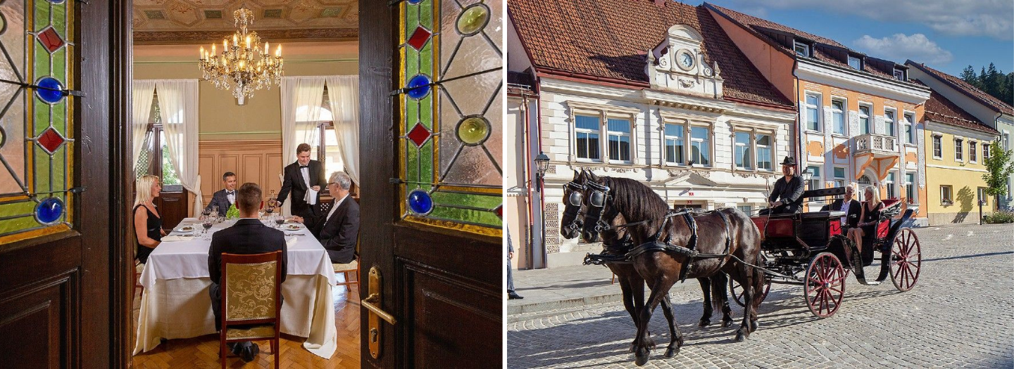 The day’s journey continues in a vintage car to a nearby manor and then on to Lajše Airfield, where a panoramic flight offers a striking perspective over the valley. From above, the evolving landscape tells a story of adaptation—from family-run factories to modern industry, from the rhythm of machines to the calm reflection of lakes formed in former mining grounds. A glass of champagne marks the finale of an experience that is both nostalgic and inspiring.