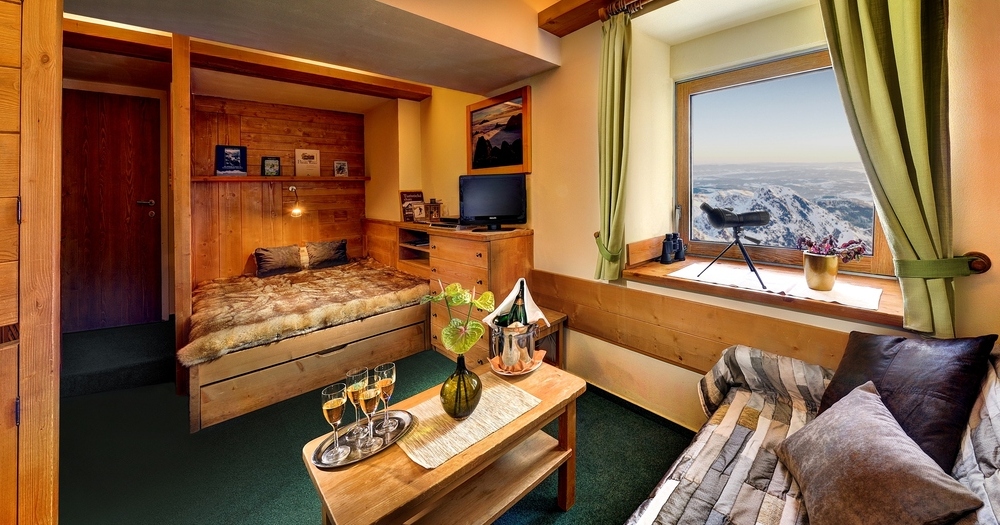 Want to awe your partner and take your relationship to new heights? Vist Lomnický peak in the High Tatras. An iconic cable car from Skalnaté Pleso will take you to the top in just nine minutes and give you a breathtaking view of the clouds. The Dedo Café, at 2634 meters, is the perfect place to satisfy your hunger with rich coffee and delicious pastries. Fancy a stay in one of the two rooms and a gourmet, 4-course dinner by candlelight? GEO Saison, a prestigious travel magazine, recommends this experience – and with good reason. The starry sky is like an ever-changing canvas, each star adding a stroke of beauty and wonder. Catch this marvelous view from your cozy room with a genuine mountain atmosphere surrounded by majestic peaks.