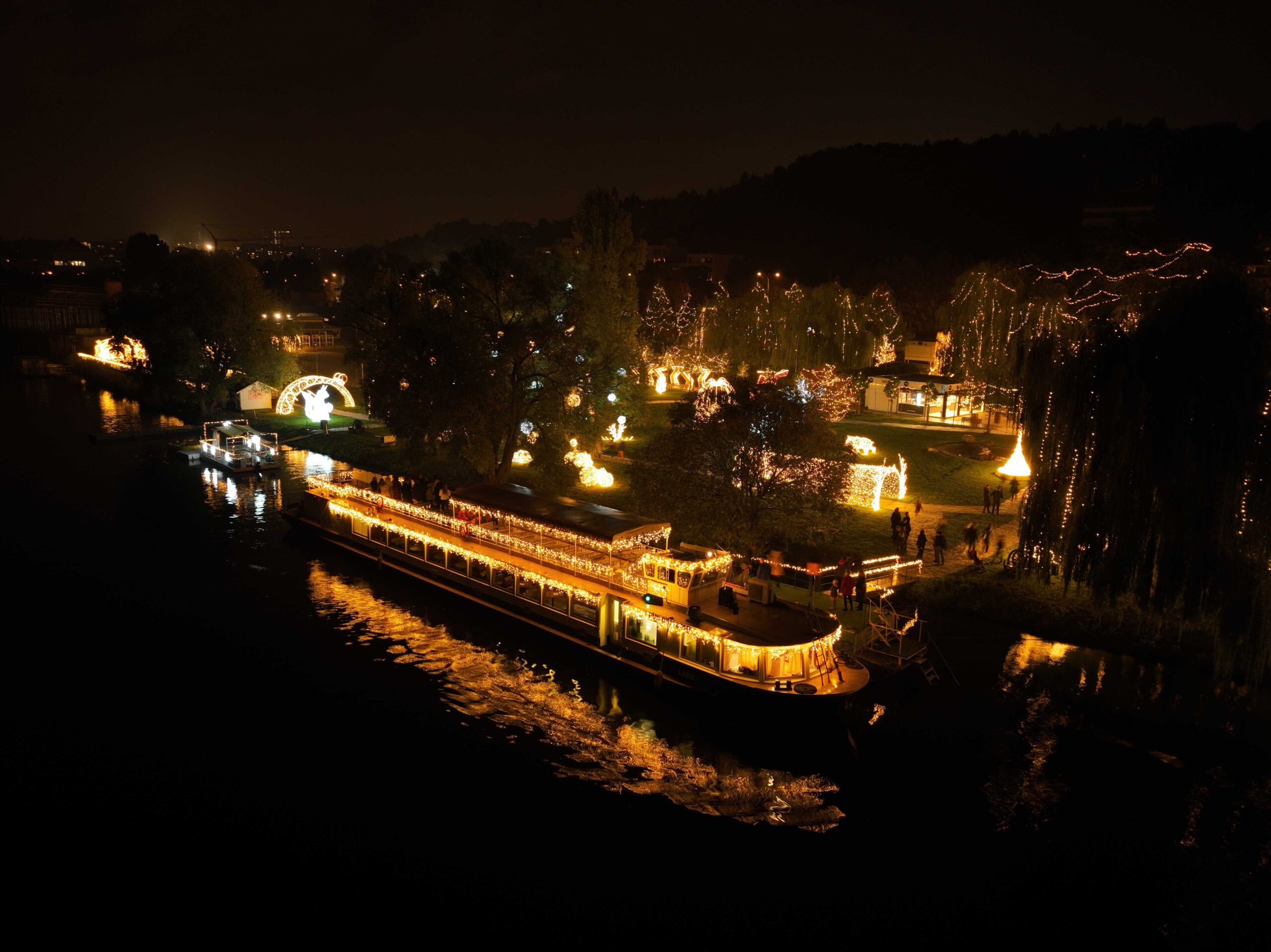 Getting here will be an experience ― you can travel on a cute Christmas tram adorned with twinkly lights. If a walk among 170 light sculptures, including the Prague Eiffel Tower, isn't enough, you can gaze at the light exhibition from an entirely new perspective ― the deck of a boat or an open houseboat. Seeing the reflection of 400,000 lights on the water is simply magical. The illuminated boat will not only take you on a cruise near the park but also into the city center and back.