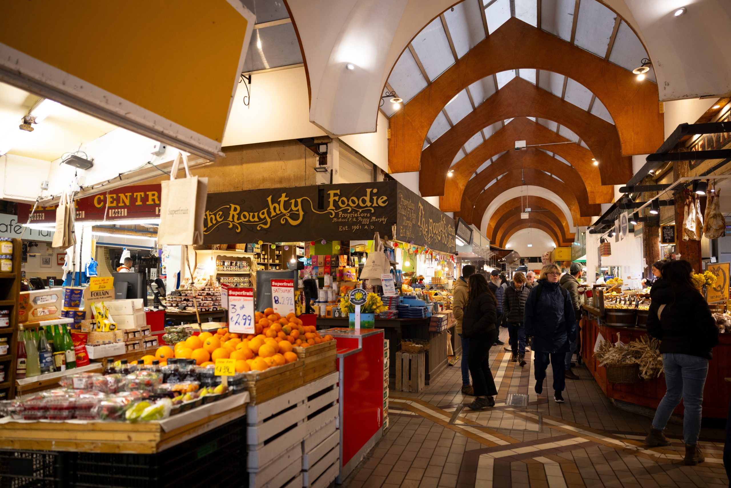 The rhythm of daily life in full swing at Cork’s historic English Market. Established in 1788, its vaulted ceilings shelter stalls of farmhouse cheeses, warm bread, spiced beef, smoked salmon and handmade sweets.