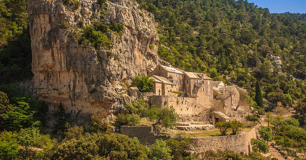 After embarking from Split, your first stop could be the island of Brač, where either a trip to Zlatni Rat beach in Bol or a climb up Vidova gora is a must-do. The Blaca Hermitage (Pustinja Blaca) is an eco-museum located on the southern side of Brač on a steep cliff, and was originally built as a monastery in the 16th century. A unique feature of this museum is its isolation; it can be reached from several directions, but only on foot.