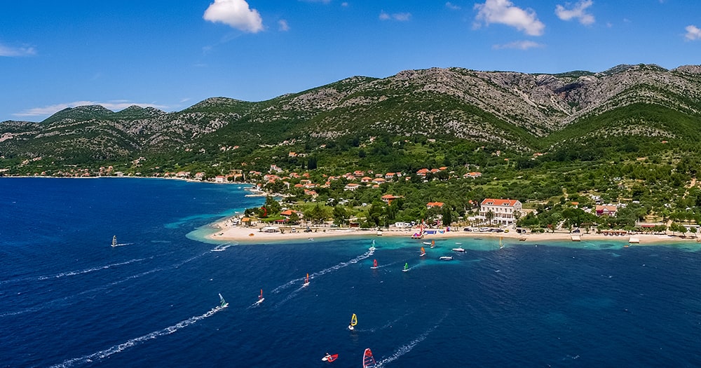 The next stop could be Korčula, known as the home of Marco Polo and famous for the medieval towers and walls fortifying its harbor. While on Korčula, you can try surfing and kiting; the Pelješac channel, a narrow channel between the Pelješac peninsula and Korčula island, is famous among windsurfers and kite surfers due to the local northwesterly wind, called Maestral, which appears in the channel mainly during the summer season.