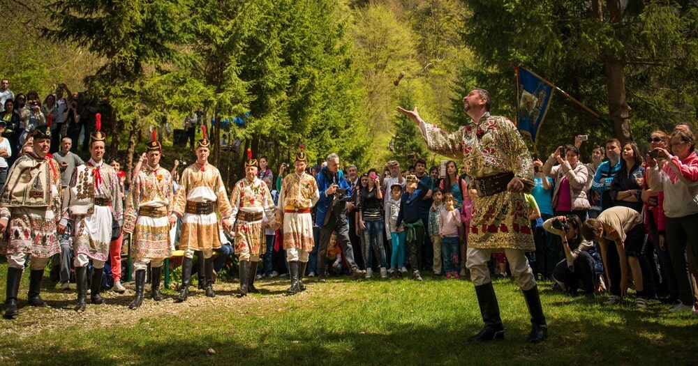Traditional music is much appreciated in Romania. A famous festival is the Romanian Căluș, which takes place in June, in Caracal, continuing a tradition of over 50 years of celebrating the ancient dance of Călușari. In July, in Timișoara (European Capital of Culture in 2023) another long-standing festival, the Hearts’ Festival, takes place with folk groups from all over the world. Also in July, at the Maidens’ Fair on Mount Găina in the Apuseni Mountains, thousands of people meet to celebrate an old custom that used to take place here: wedding arrangements. Another special event is the parade of Brașov Juni (young men) on the first Sunday after Easter. Seven groups of Juni, each with their own costumes and customs, march from Șcheii Brașovului, an old neighborhood of Brașov, to the city center and then outside the city to a beautiful clearing where traditional dances are performed.