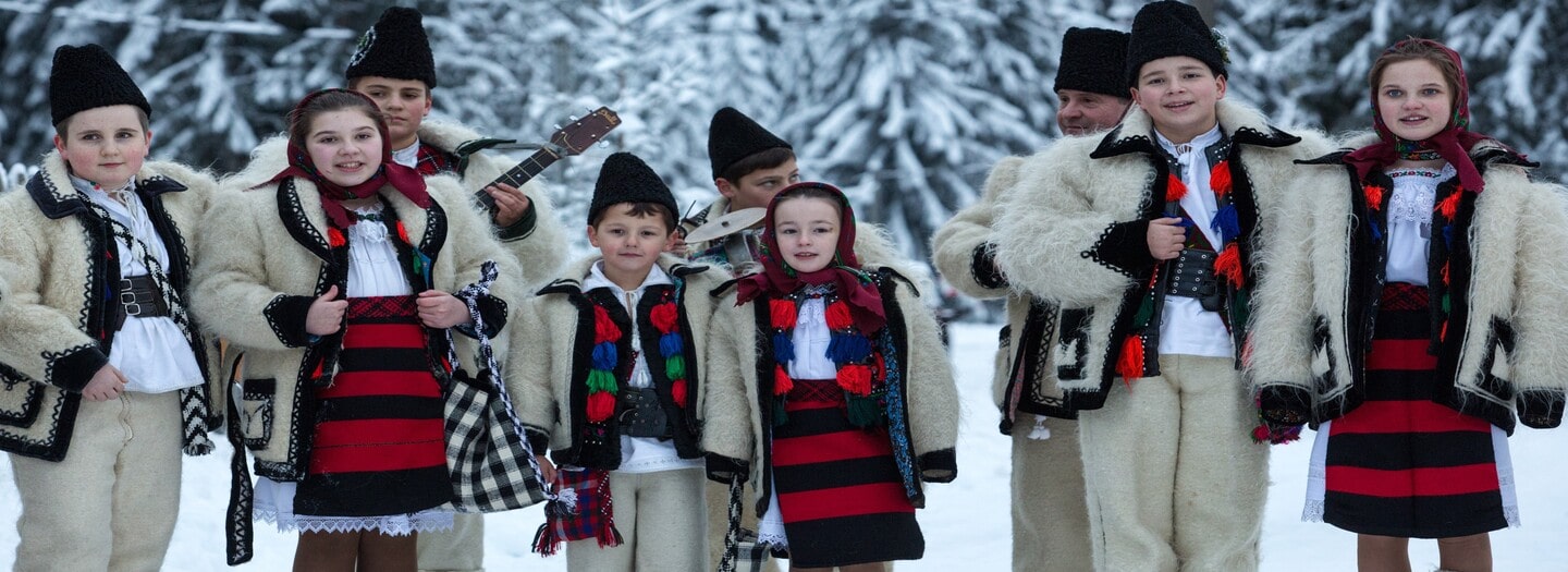 The season starts on November 30th with St. Andrew’s Day, the patron saint of Romania, who came to Dobrogea at the Black Sea Coast to preach the Gospel. The 1st of December marks the National Day of Romania, when ceremonies are held all over the country. The most impressive are in Alba Iulia (the city where the Great Union was signed in 1918) and in Bucharest. December 6th is dedicated to St. Nicholas, when the evening before, well-behaved children find gifts in their cleaned boots, and the naughty ones a symbolic colored stick. Christmas is celebrated from December 24th-26, very much a family time.