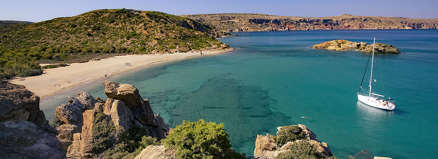 If you are an island lover, Crete can offer you a host of experiences: stroll in the old town of Chania to discover the town’s Venetian past or go hiking at popular Samaria Gorge in the south. In the Rethymno region, visit Psiloritis UNESCO Global Geopark, and enjoy your hiking, caving, or rock-climbing trips. In the Lasithi region don’t miss out on going to the area of Vai; the beaches are amazing, with warm, crystal-clear waters and a palm tree forest nearby.